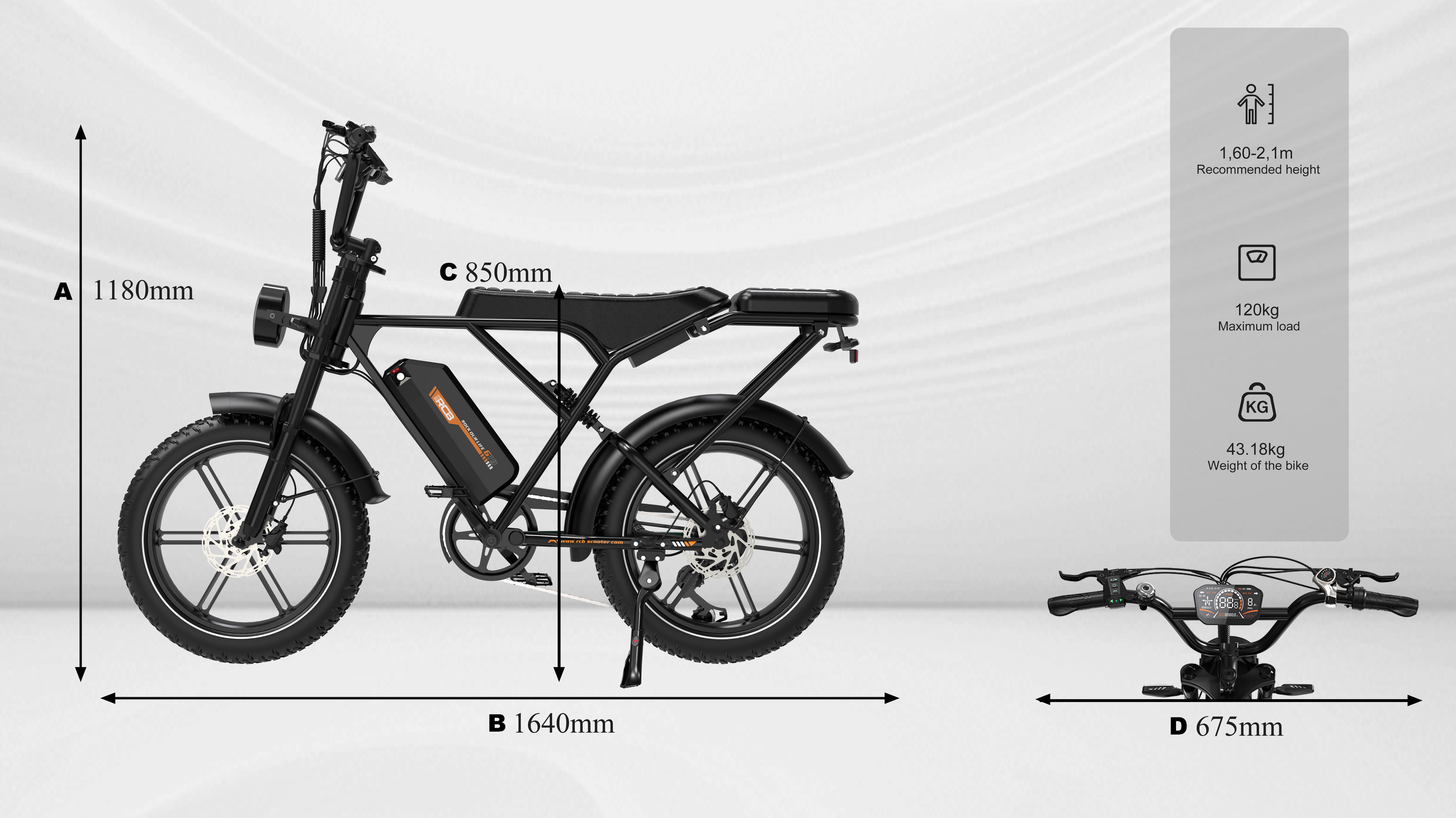 Super range: the longest range of the e-bike can be 90 km (the specific range depends on road conditions, load and other factors), so you don't have to worry about the travel distance.