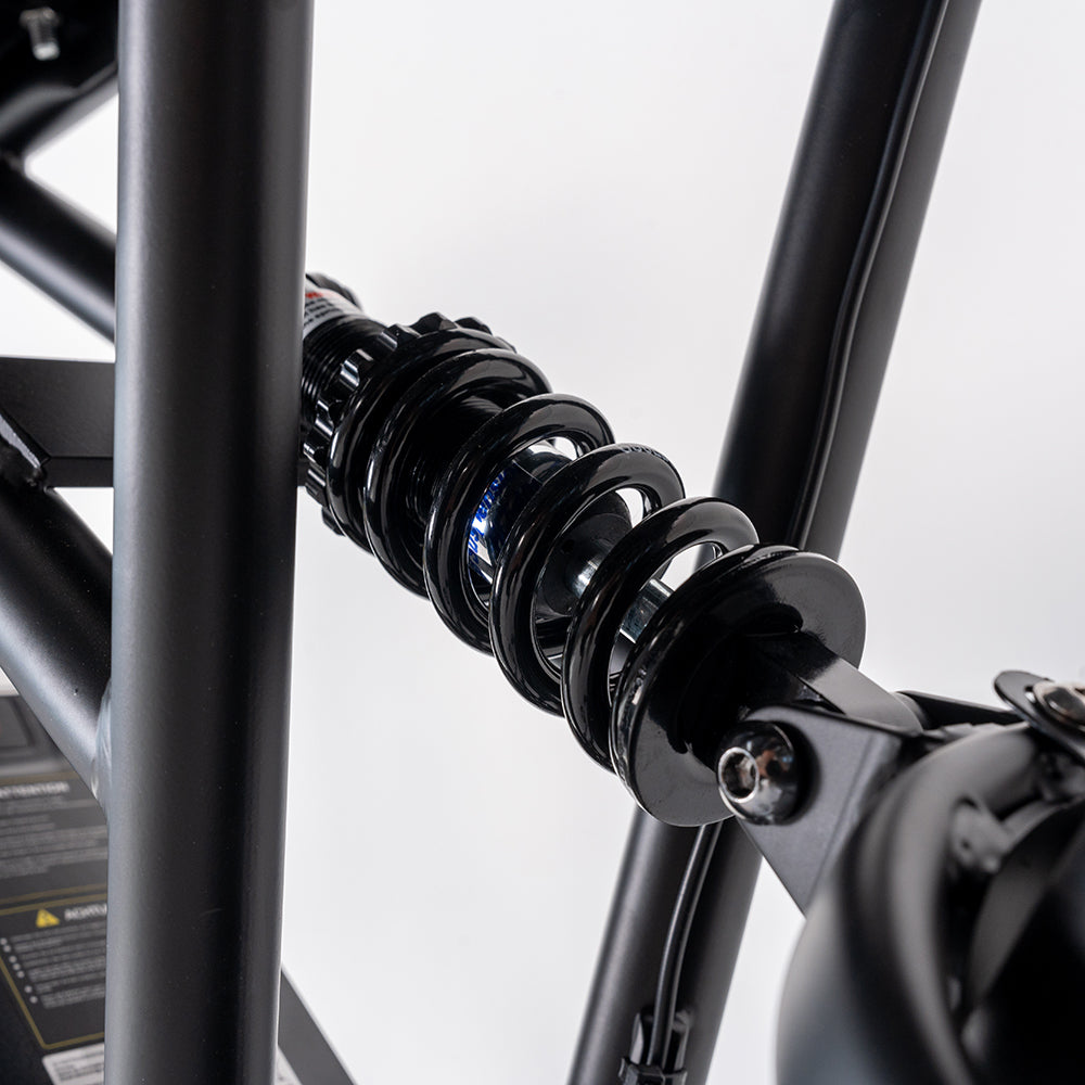 Dual suspension dampers absorbbumps in the road for a smoother,more comfortable ride