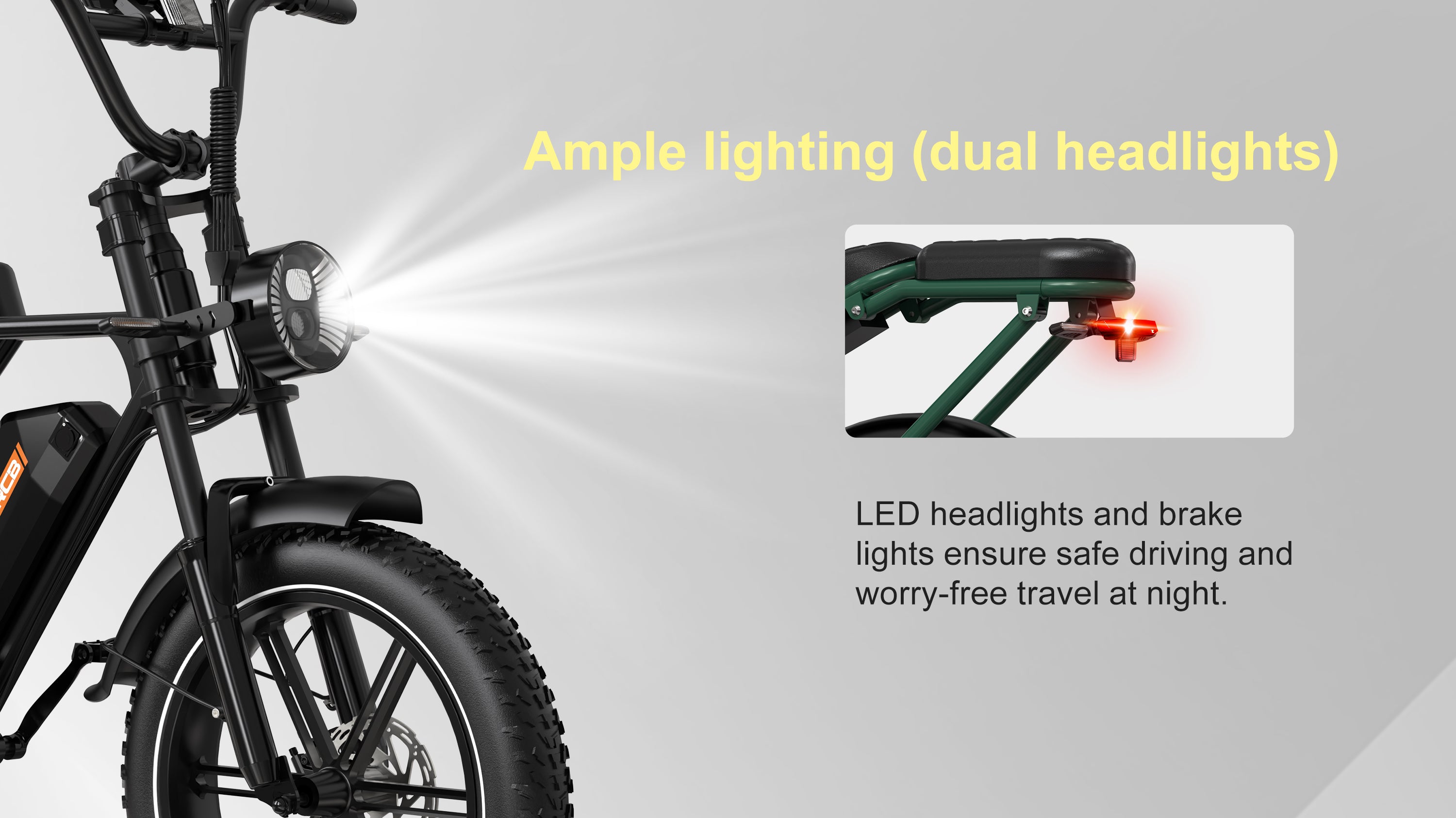 The front dual LED headlightsand brake lights ensure safedriving and worry-free travel atnight.