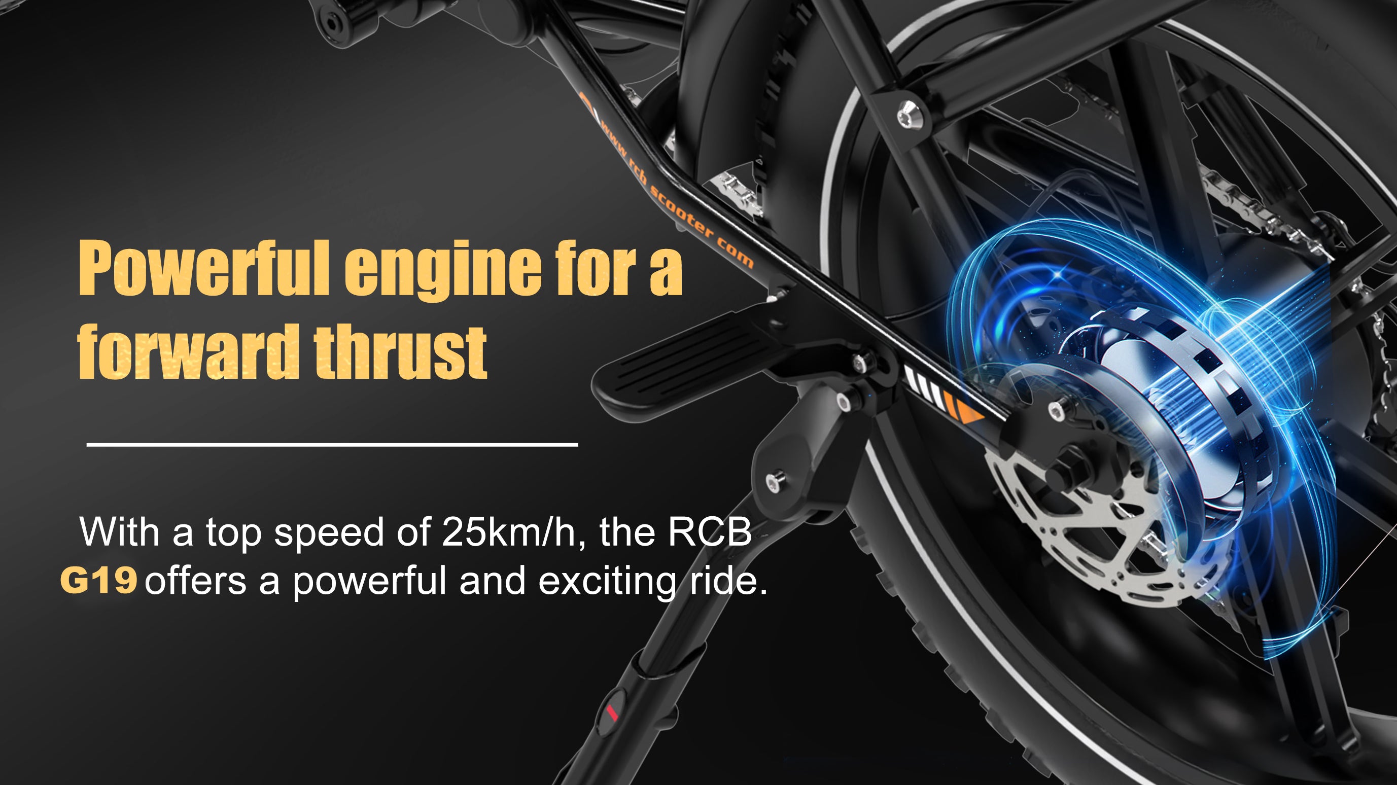 With a top speed of 25km/h, the RCB G19 offers a powerful and exciting ride.