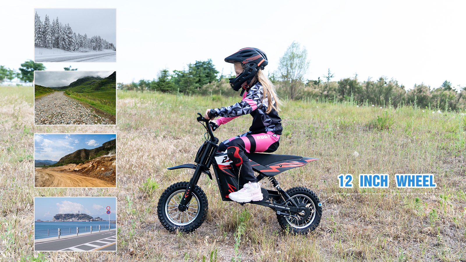 Equipped with 12-inch rubber wheels, it is wear-resistant and has better grip. It can be driven on snow, sand, dirt and urban roads